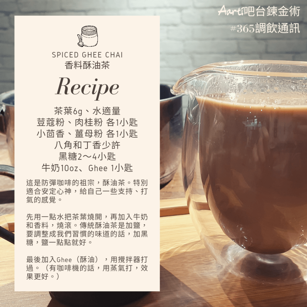 最後加入Ghee(酥油),用攪拌器打過。(有咖啡機的話,用蒸氣打,效果更好。)