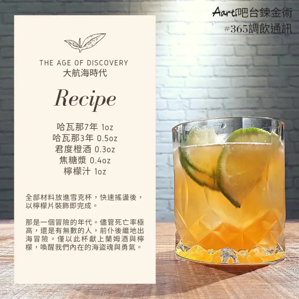 那是一個冒險的年代。儘管死亡率極高,還是有無數的人,前仆後繼地出海冒險。僅以此杯獻上蘭姆酒與檸檬,喚醒我們內在的海盜魂與勇氣。