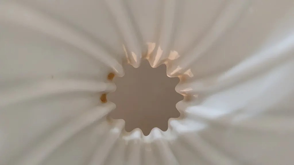 V60會比其他椎行濾杯流速慢一截的原因,就在它的肋骨設計:V60是螺旋彎曲型的,排水路徑較長;並且肋骨的深度略淺。