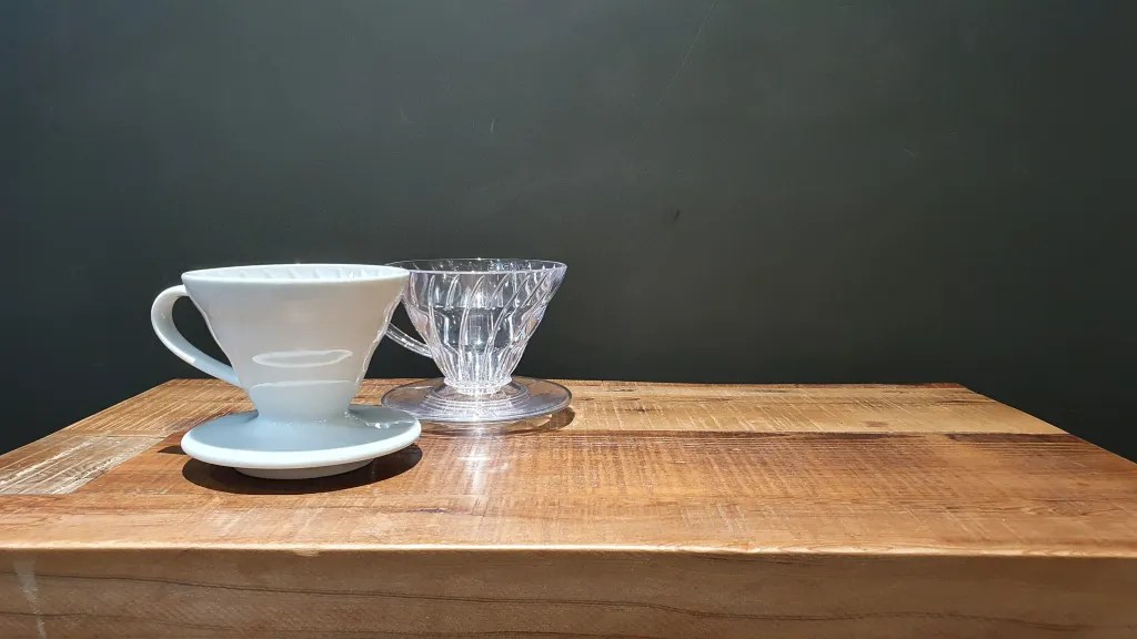肋骨會相當地影響排水,肋骨越深、越直,排水通常會越快。就是一個V60,壓克力款跟陶瓷款,因為肋骨深度不同,流速就會不一樣。