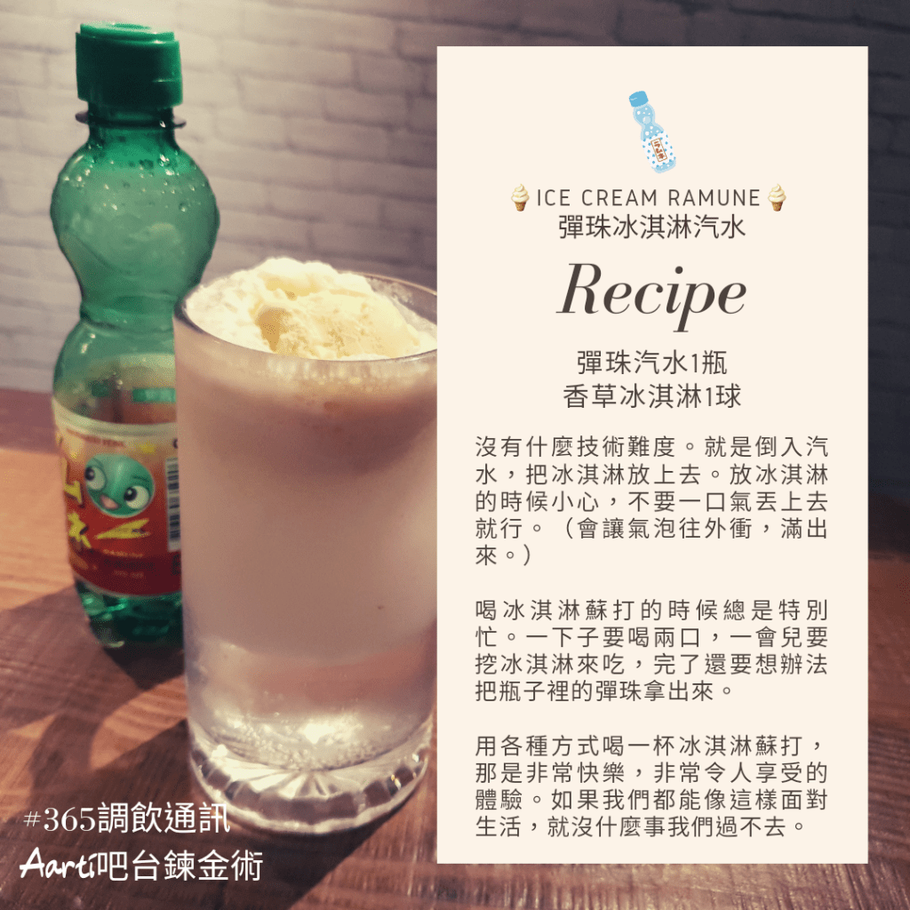 今天喝彈珠汽水的冰淇淋蘇打。