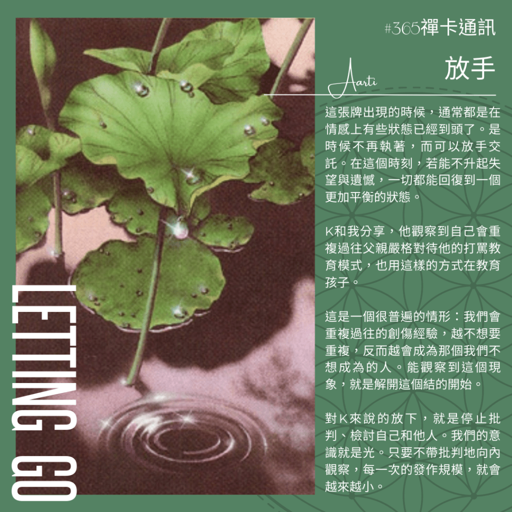今天來抽牌的是一位新朋友(也叫K),抽到的牌是「放手」Letting go。