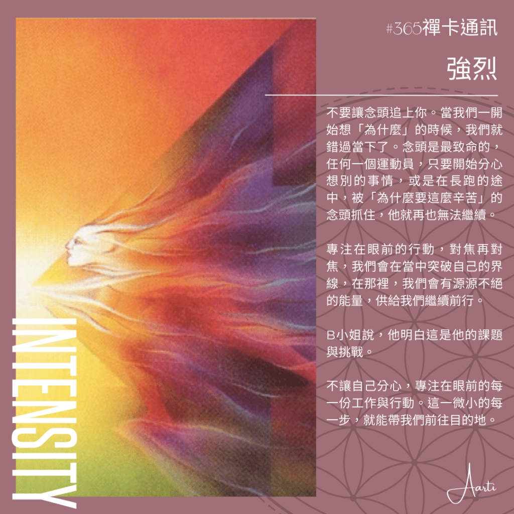 專注在眼前的行動,對焦再對焦,我們會在當中突破自己的界線,在那裡,我們會有源源不絕的能量,供給我們繼續前行。