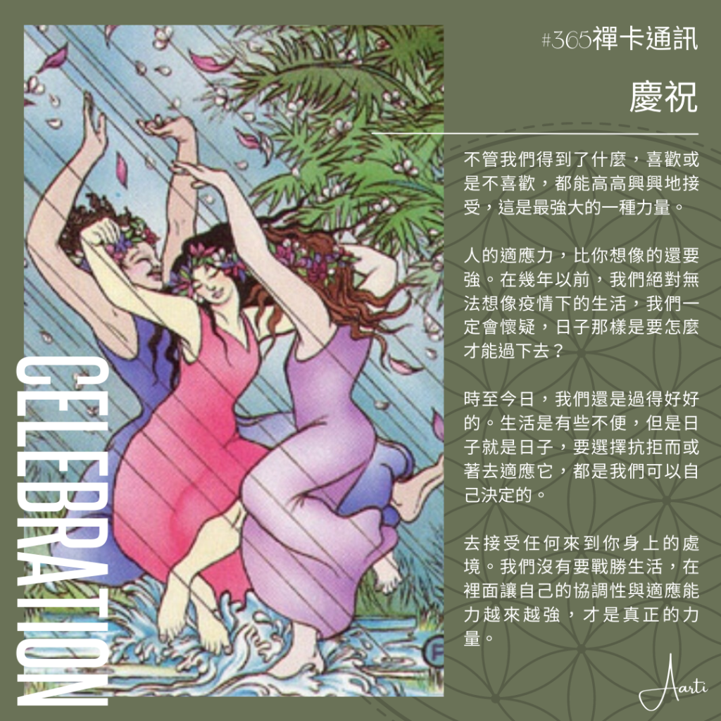 延續昨天的話題,當我們回到單獨,無所依靠的時候,很多事情會覺得都是自己一個人要獨自面對。這時候,「慶祝」這張牌,總是會給我面對的勇氣。