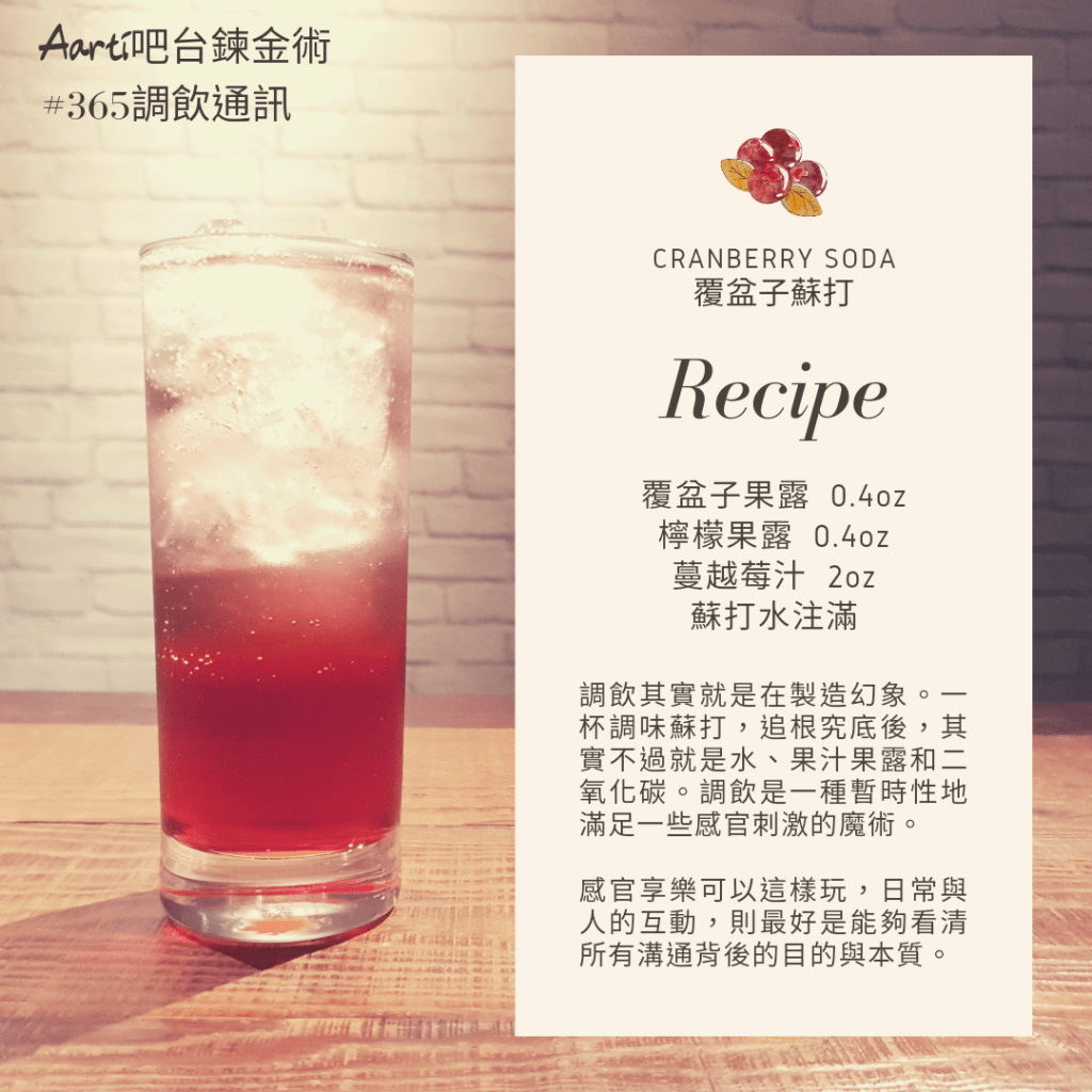 調飲其實就是在製造幻象。一杯調味蘇打,追根究底後,其實不過就是水、果汁果露和二氧化碳。調飲是一種暫時性地滿足一些感官刺激的魔術。