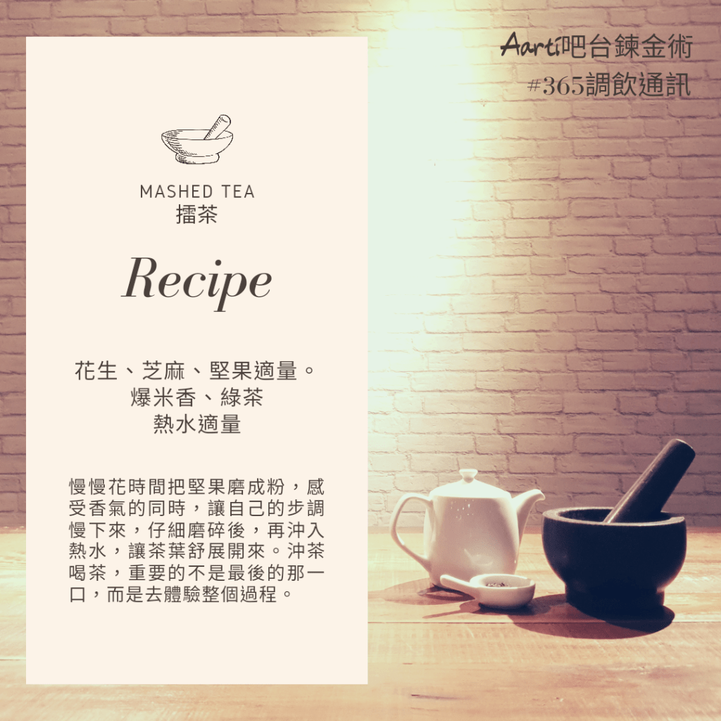慢慢花時間把堅果磨成粉,感受香氣的同時,讓自己的步調慢下來,仔細磨碎後,再沖入熱水,讓茶葉舒展開來。沖茶喝茶,重要的不是最後的那一口,而是去體驗整個過程。