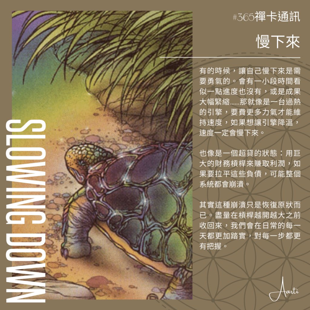 有時我們必須積極向前,有時我們需要緩下步調。什麼時候該為自己做出什麼樣的調整?讓禪卡和Aarti的觀察與解讀,協助你定位。