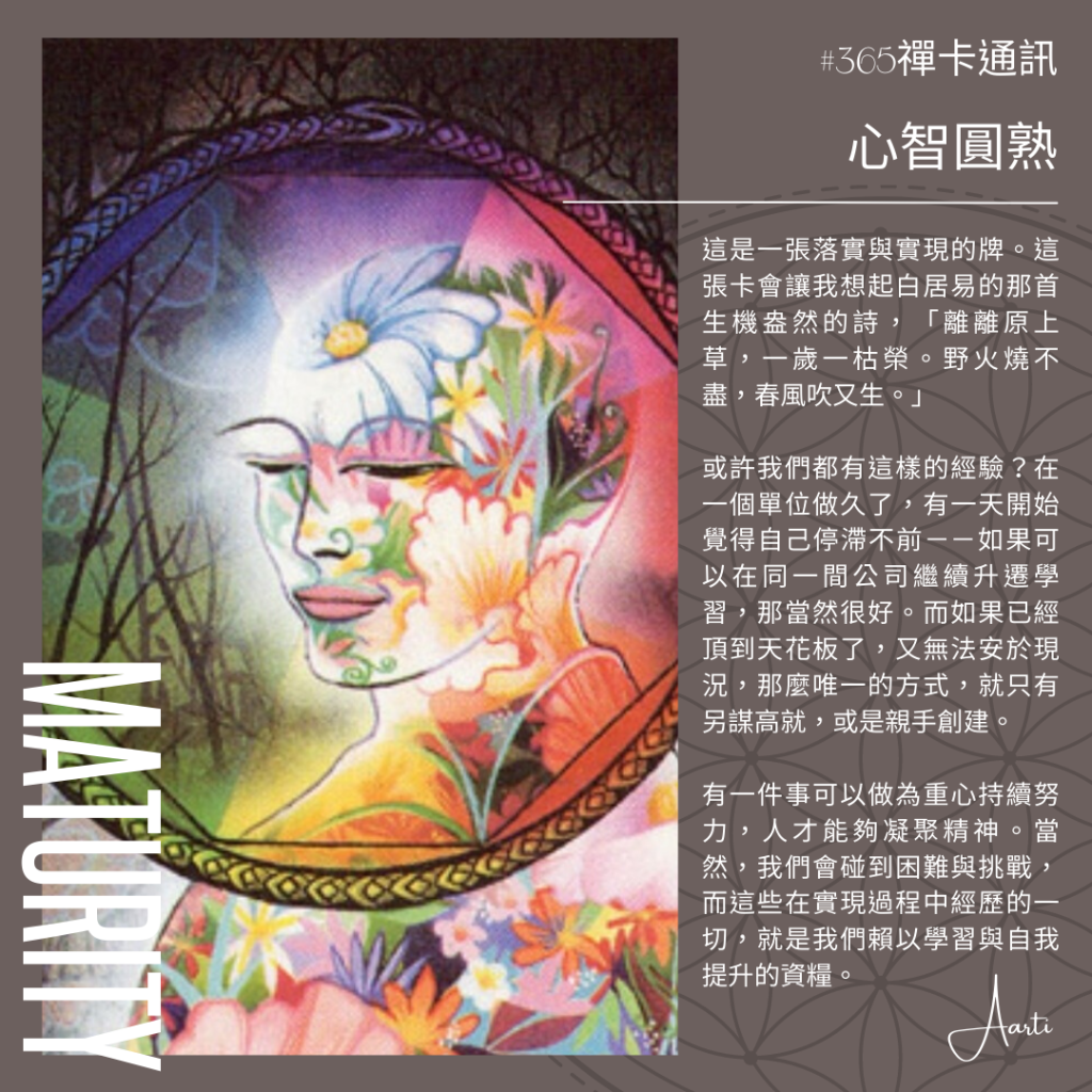 這是一張落實與實現的牌。這張卡會讓我想起白居易的那首生機盎然的詩,「離離原上草,一歲一枯榮。野火燒不盡,春風吹又生。」