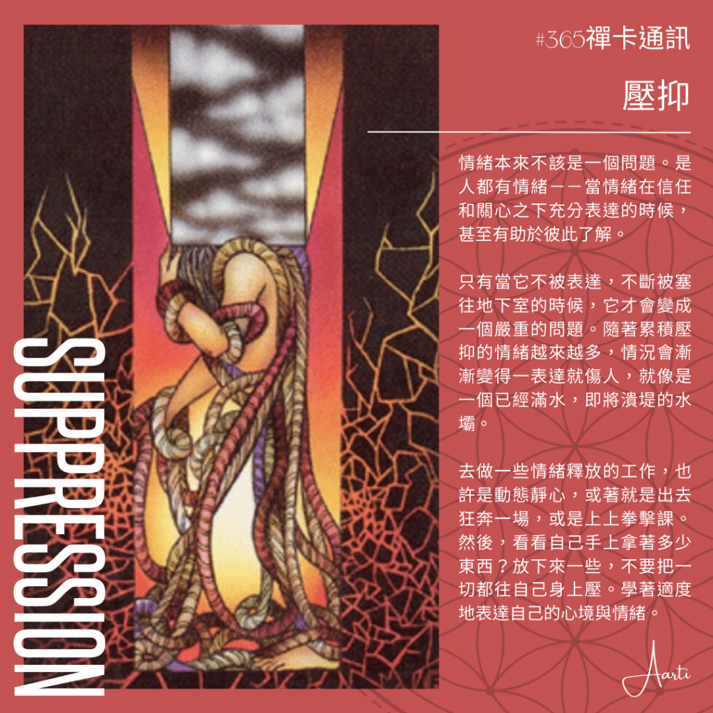 想學會禪卡嗎?先廣告一下。對應今天「壓抑」這張牌,火元素工作坊要帶的,就是釋放情緒的動態靜心。
