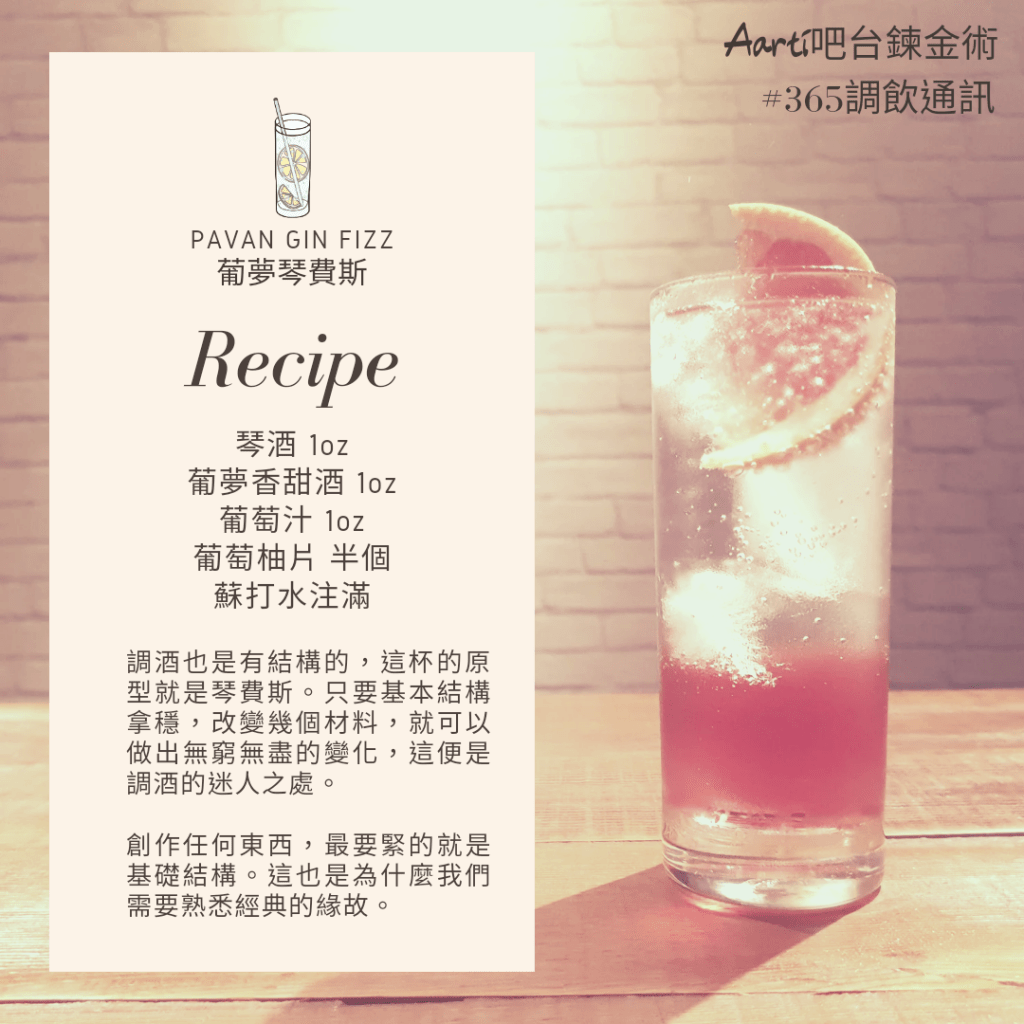 調酒也是有結構的,這杯的原型就是琴費斯。只要基本結構拿穩,改變幾個材料,就可以做出無窮無盡的變化,這便是調酒的迷人之處。