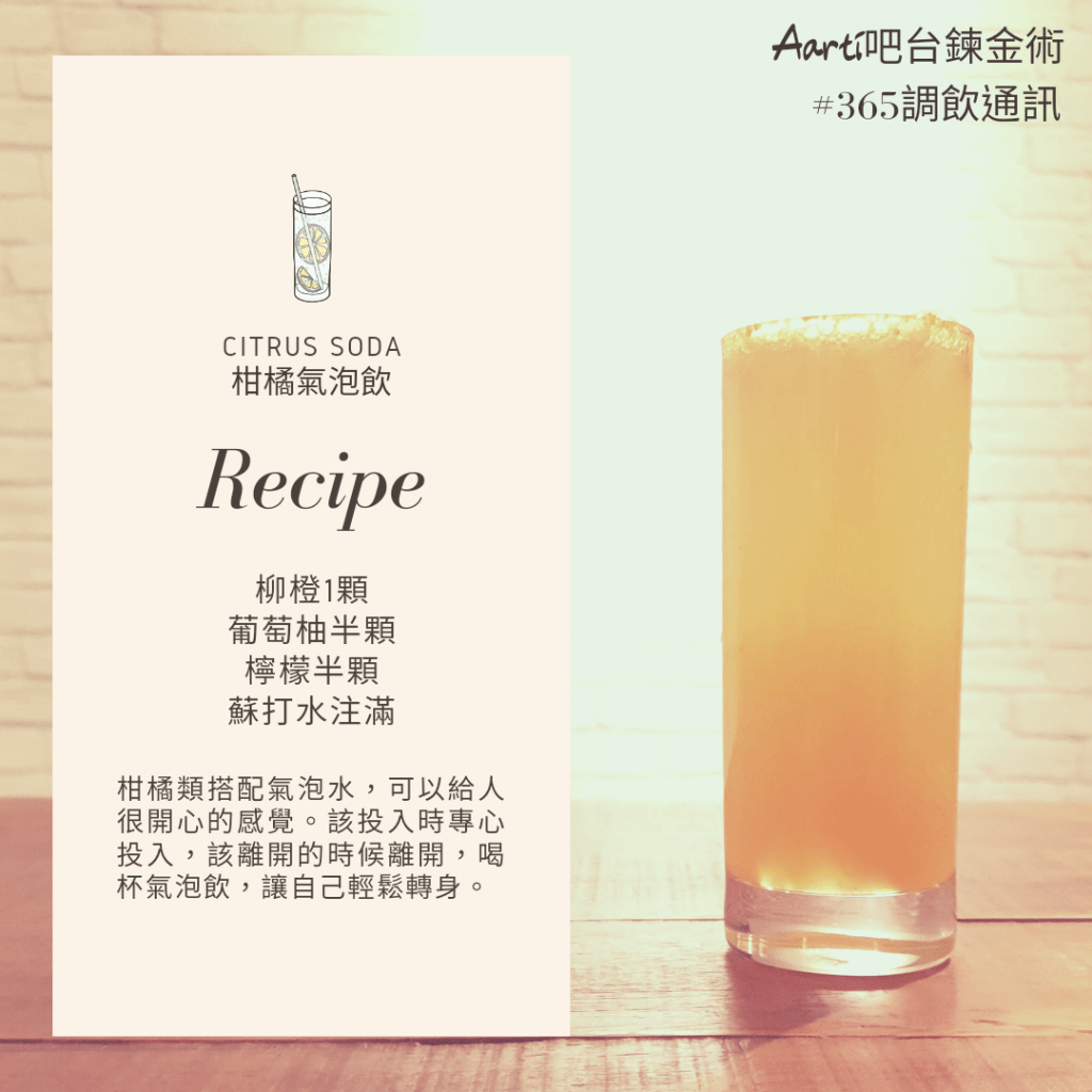 柑橘類搭配氣泡水,可以給人很開心的感覺。該投入時專心投入,該離開的時候離開,喝杯氣泡飲,讓自己輕鬆轉身。
