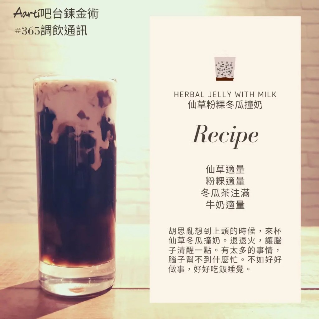 胡思亂想到上頭的時候,來杯仙草冬瓜撞奶。退退火,讓腦子清醒一點。有太多的事情,腦子幫不到什麼忙。不如好好做事,好好吃飯睡覺。