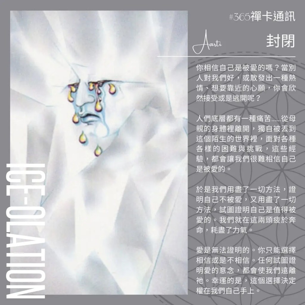 看清楚自己心智運作的模式,我們就有機會改變自己的命運,去實現自己想要的生活。透過禪卡占卜與Aarti的解讀,我們從內在原型梳理到實際落實的方向,找出實現心願的軌道。