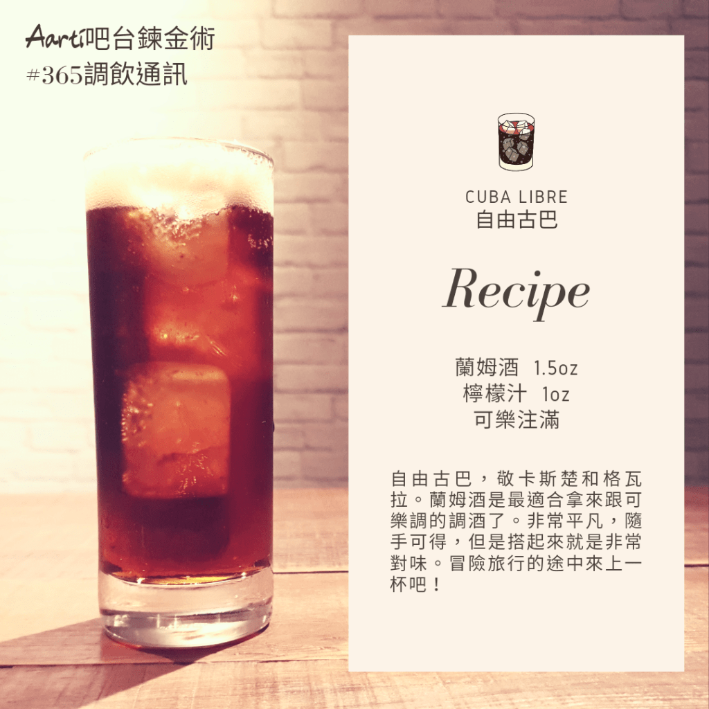 自由古巴,敬卡斯楚和格瓦拉。蘭姆酒是最適合拿來跟可樂調的調酒了。非常平凡,隨手可得,但是搭起來就是非常對味。冒險旅行的途中來上一杯吧!