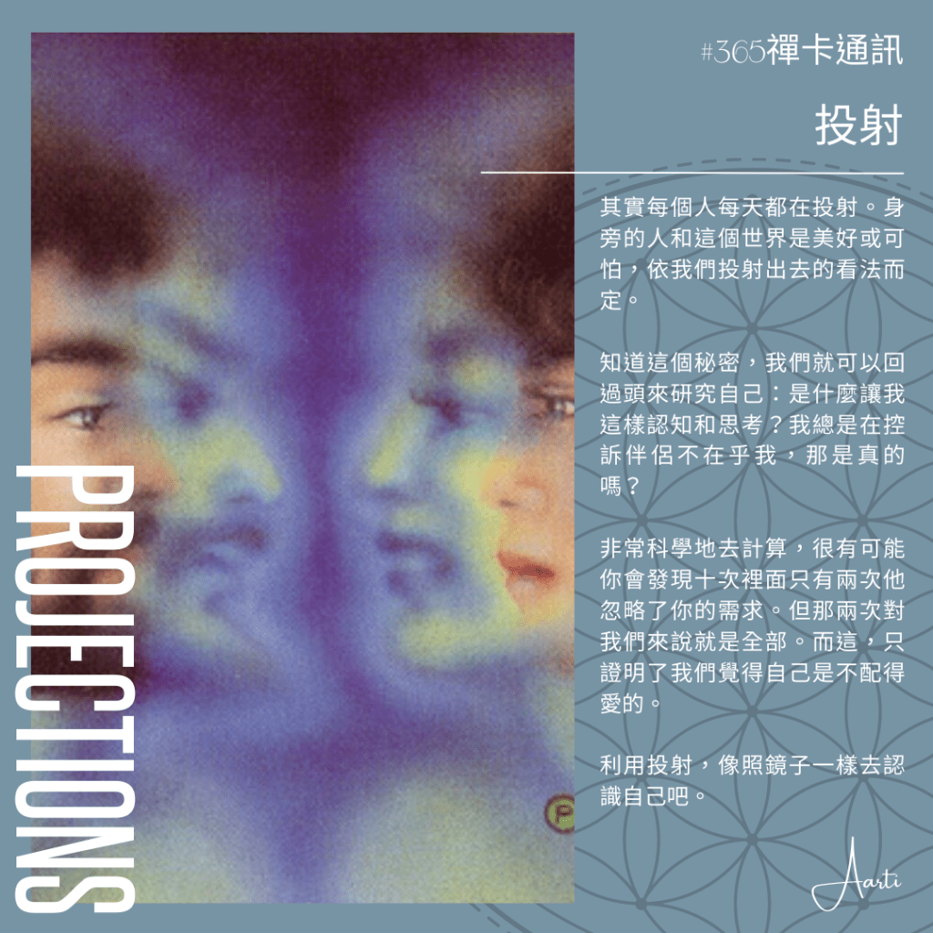 其實每個人每天都在投射。身旁的人和這個世界是美好或可怕,依我們投射出去的看法而定。