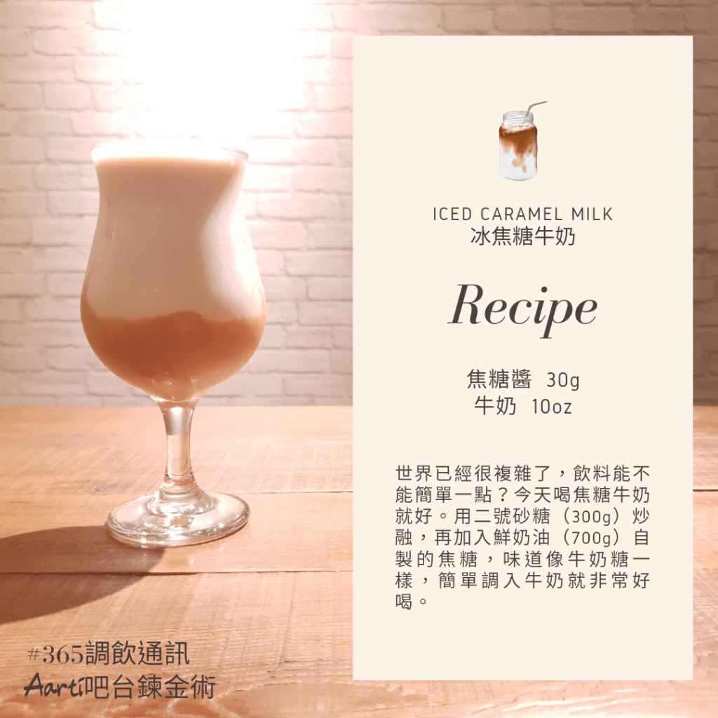 世界已經很複雜了,飲料能不能簡單一點?今天喝焦糖牛奶就好。用二號砂糖(300g)炒融,再加入鮮奶油(700g)自製的焦糖,味道像牛奶糖一樣,簡單調入牛奶就非常好喝。