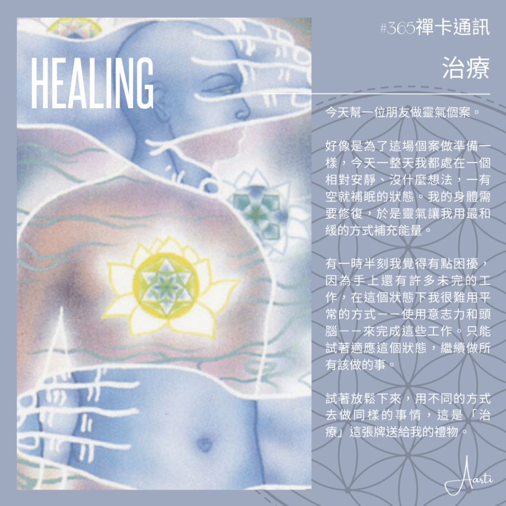 Aarti的禪卡占卜,和靈氣療癒一樣,是另外一種形式的能量整理。整理問題背後的脈絡與心智狀態,並透過禪卡指出最佳的發展趨勢。